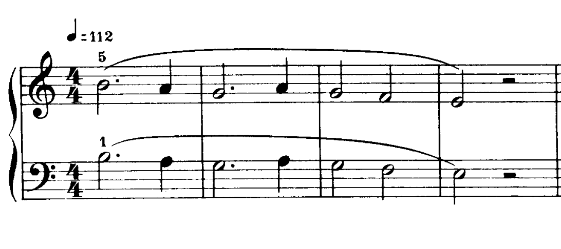 Sandy is a beginning piano student who is learning to read and play rhythms. She is developing a new skill: understanding the difference between a dotted-half note and a half note without a dot. She is working on one of the Mikrokosmos of Bela Bartok. Here’s the rep set she’s working on: