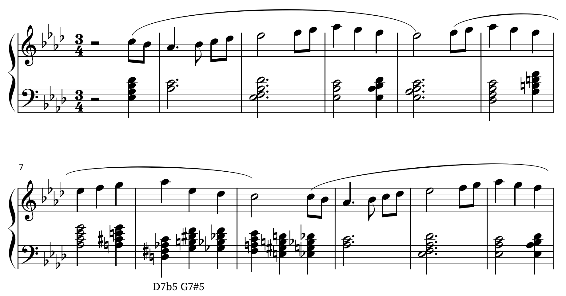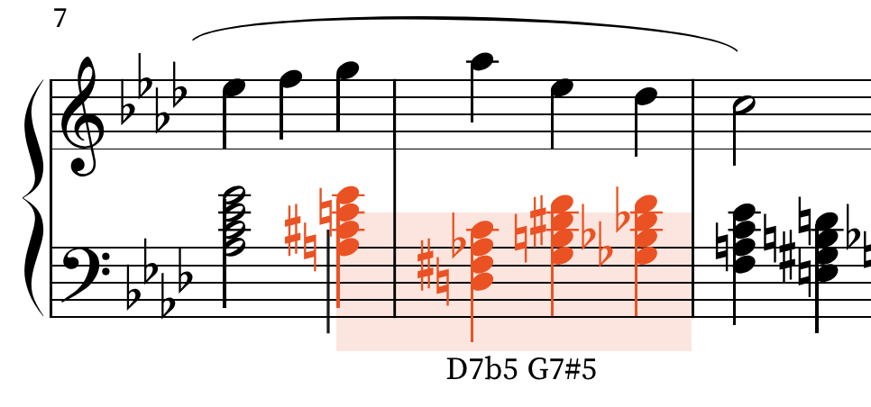 The next repetition started off well, as it had before. The first phrase went fine. And as I started the second phrase, I played with a much clearer image of what I wanted to play. It went very well. The only blip was that my thumb (playing the 7th of the G7#5) got pushed out of the way by my second finger on the D#. But, it felt like a victory. I played the whole thing through again two more times, both correctly, and called it good.